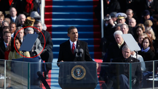 The teleprompters are just for show so that it looks like he can read